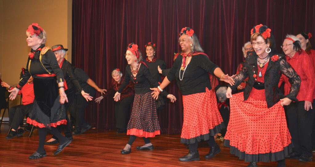 VINSON HALL resident Midge Holmes and her “Motion is Lotion” dance troupe opened the show with an elegantly-costumed take on the “Macarena.”