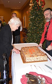 Woodrow Wilson was serving as 28th president when the oldest of the Vinson honorees – Hollis Blood – was born. A native of Indiana, the 101-years-old Ms. Blood was asked to cut the first slice of the birthday cake – with its “Celebrating 4588 Years” frosting message – to share with her birthday pals.